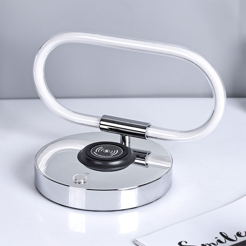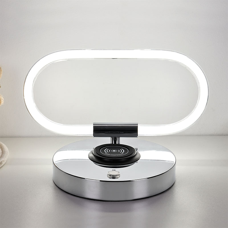 ওয়্যারলেস চার্জার সহ 360 ডিগ্রি আলো উপবৃত্তাকার আকারের LED ডেস্ক ল্যাম্প।
