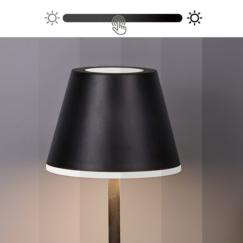 অ্যাসেম্বলি কর্ডলেস লেড টেবিল ল্যাম্প হল শেড সেন্টারের উপরে একটি টাচ বোতাম। আলোর সুইচ এবং তিনটি হালকা রঙের রূপান্তর নিয়ন্ত্রণ করতে পারে, ঠিক নিচের ছবির মতো