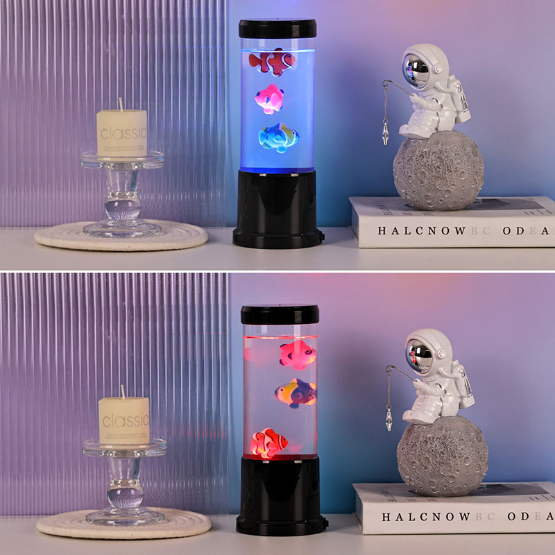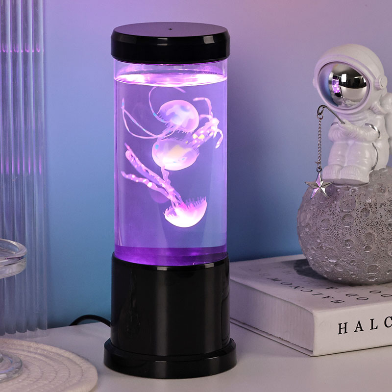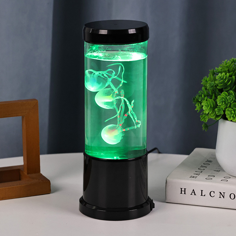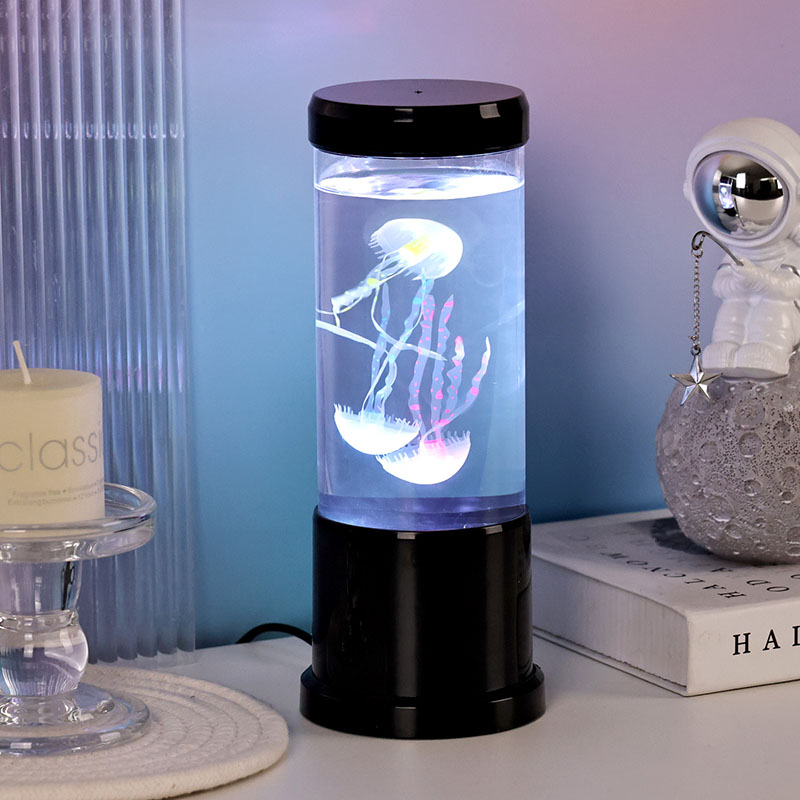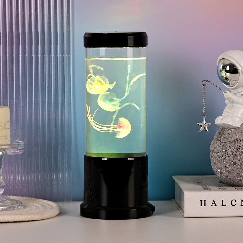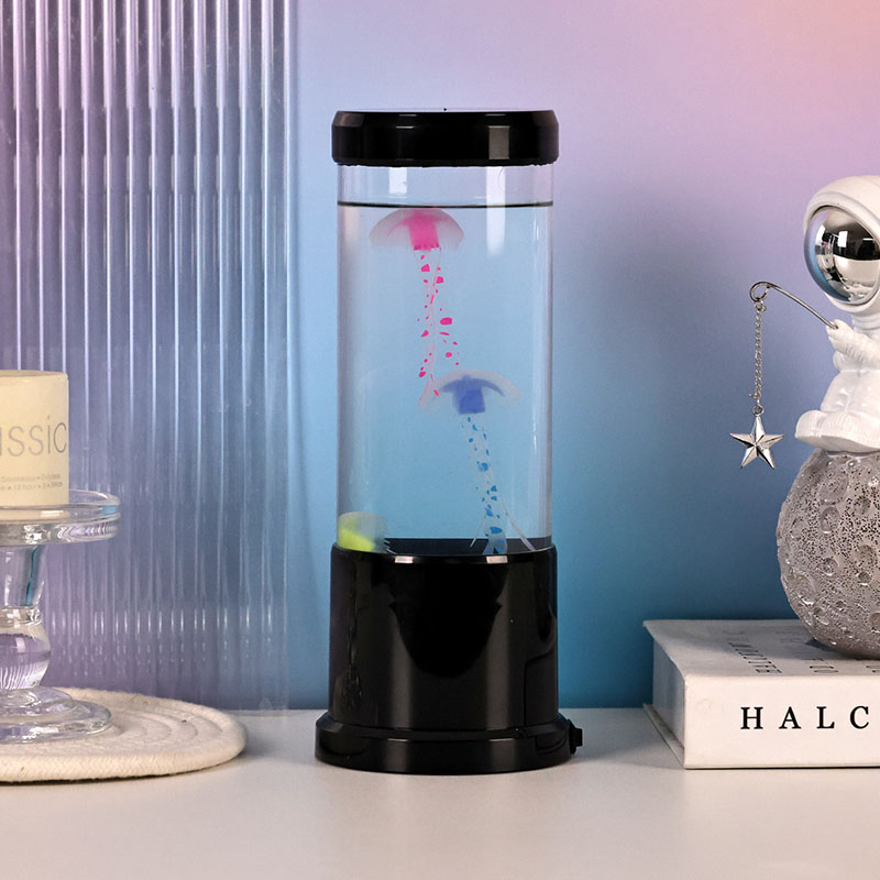 ল্যাম্পের বৈশিষ্ট্যগুলি সজীব ব্ল্যাক শেড জেলিফিশ ল্যাম্পের সাথে একটি পরিষ্কার নলাকার ট্যাঙ্কের মধ্যে ভাসছে, একটি প্রশান্তিদায়ক ডুবো পরিবেশ তৈরি করে যা যেকোনো ঘরকে একটি শান্ত সমুদ্রের পশ্চাদপসরণে রূপান্তরিত করে।