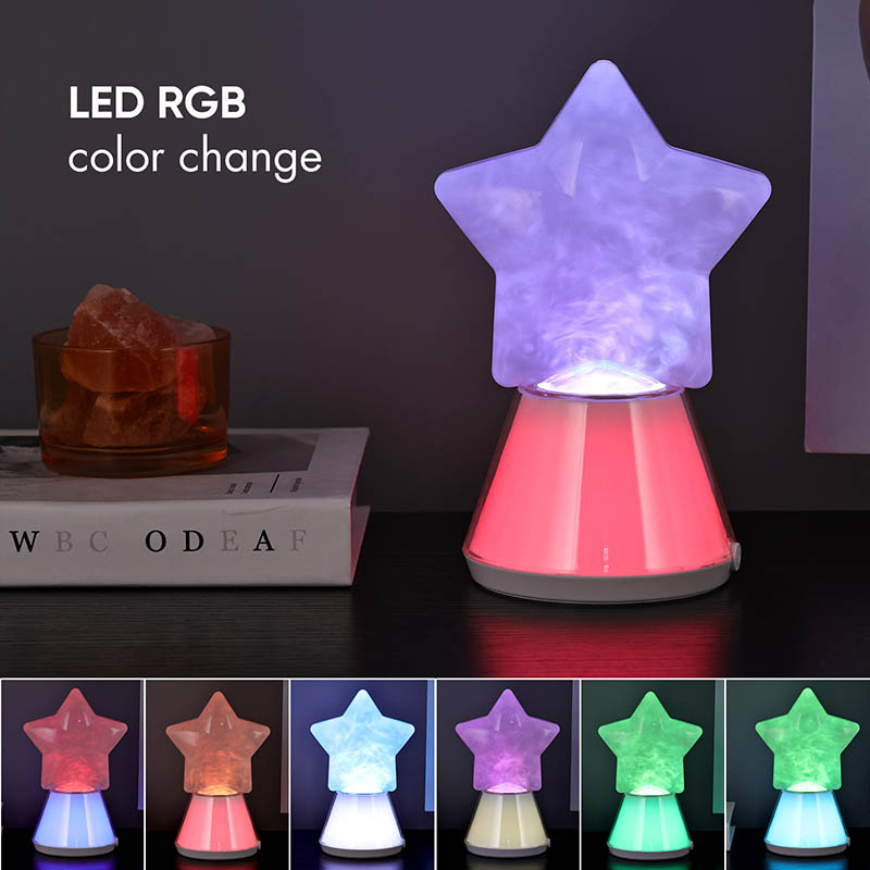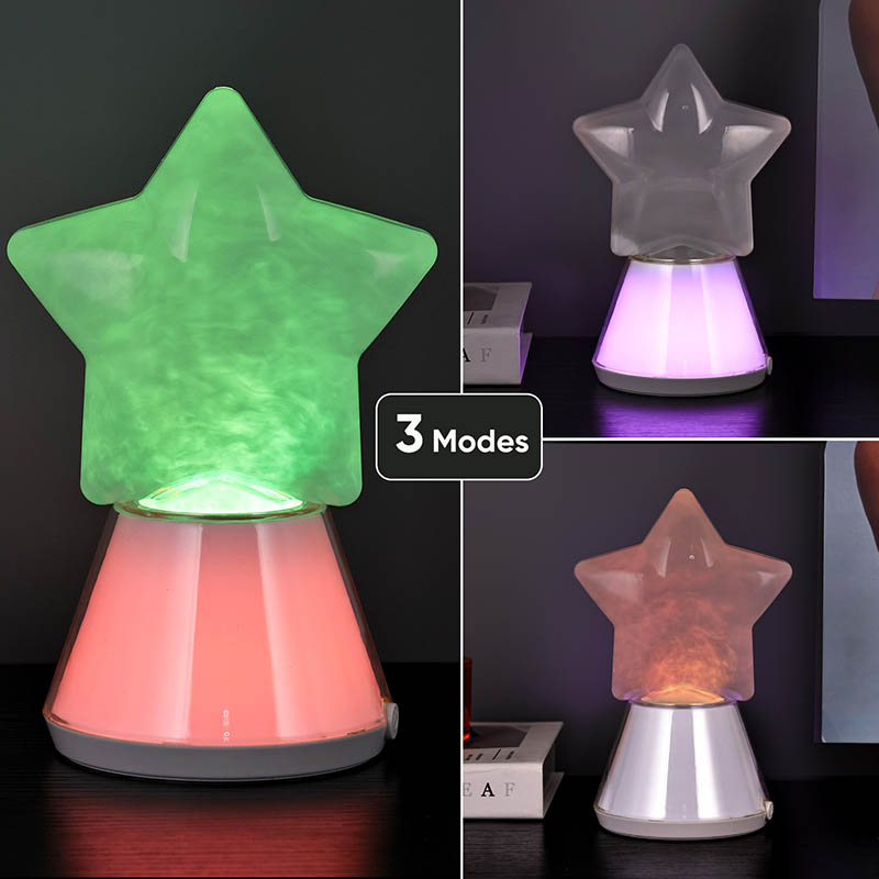 স্টার শেডের সাথে মেঘলা আরজিবি নাইট লাইটটি আধা-স্বচ্ছ, নকশার ইথেরিয়াল গুণকে যুক্ত করে। এটি উচ্চমানের উপকরণগুলি থেকে তৈরি যা কাচের শীর্ষের সাথে নির্বিঘ্নে মিশ্রিত করে একটি সম্মিলিত এবং সুরেলা চেহারা তৈরি করে।
