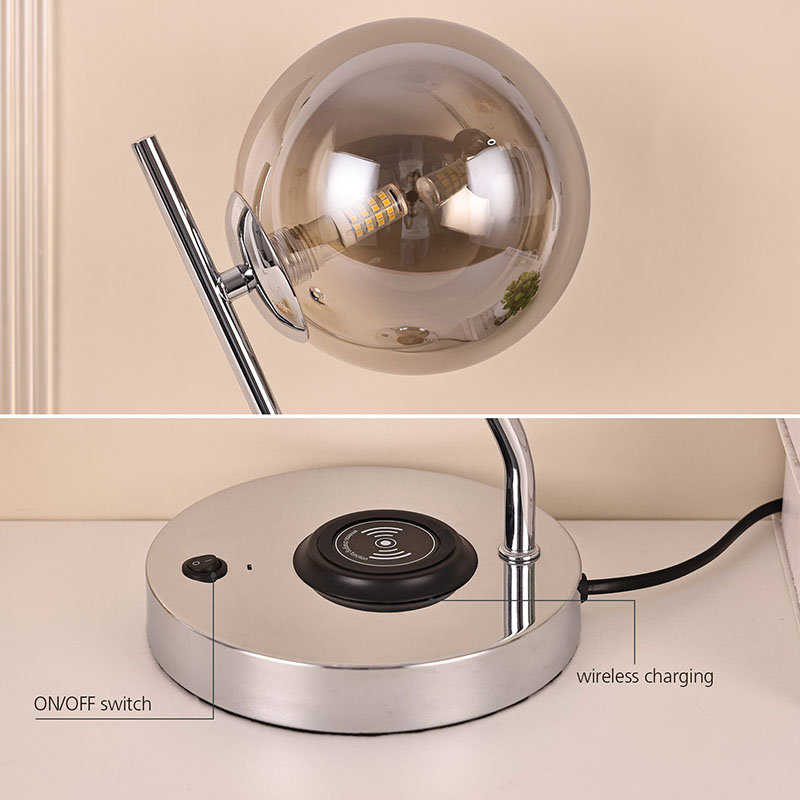 10W ওয়্যারলেস চার্জিং ফাংশন সহ, বেস অন/অফ সুইচওয়্যারলেস চার্জার সহ ডার্ক গ্লাস বল ডেস্ক ল্যাম্প যা একটি গ্লাস কভার, এলইডি উষ্ণ রঙের আলো এবং একটি ধাতব বেতার মোবাইল ফোন চার্জিং বেসকে একীভূত করে, এই উদ্দেশ্যে ডিজাইন করা হয়েছে৷ এটি উষ্ণ ডিজাইনের সাথে আধুনিক প্রযুক্তিকে পুরোপুরি একত্রিত করে, আপনাকে অভূতপূর্ব সুবিধা এবং আরামের অভিজ্ঞতা এনেছে