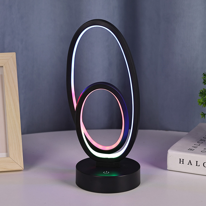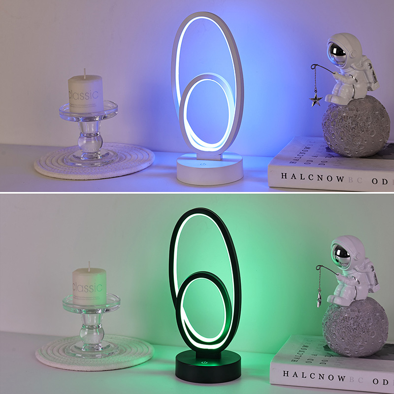 44*33*H23.5 সেমিডাবল সার্কুলার রিং শেড আরজিবি ডেস্ক ল্যাম্পে একটি ডাবল-রিং ডিজাইন রয়েছে, যেখানে মার্জিত কনট্যুরগুলি ন্যূনতম রেখা দ্বারা বর্ণিত হয়েছে। ধাতু এবং উচ্চ-মানের প্লাস্টিকের সংমিশ্রণ, এটি ব্যতিক্রমী টেক্সচার এবং একটি সূক্ষ্ম স্পর্শ গর্ব করে। একটি আলো হাতিয়ার হচ্ছে অতিক্রম, এটা