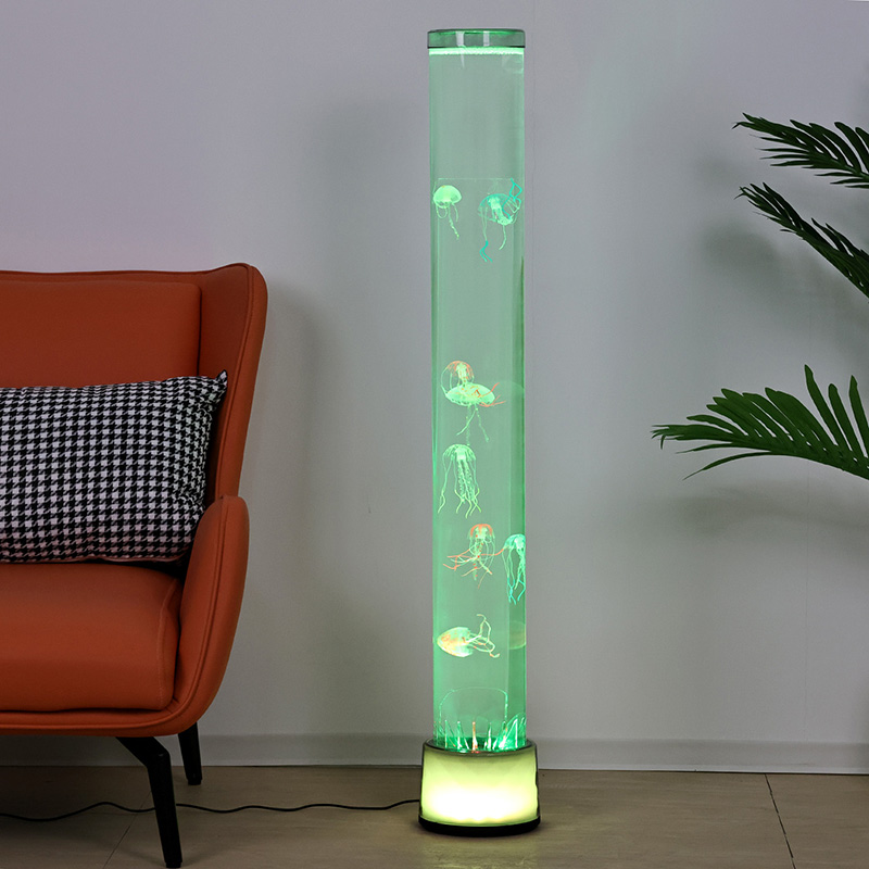 39.5*39.5*115CMবড় আরজিবি ফ্লোর জেলিফিশ ল্যাম্প হল একটি সৃজনশীল হোম ডেকোর পিস যা আধুনিক প্রযুক্তিকে প্রাকৃতিক নান্দনিকতার সাথে মিশ্রিত করে, যার মধ্যে রয়েছে স্বপ্নময় আলোর প্রভাব এবং প্রাণবন্ত জেলিফিশ ডিজাইন
