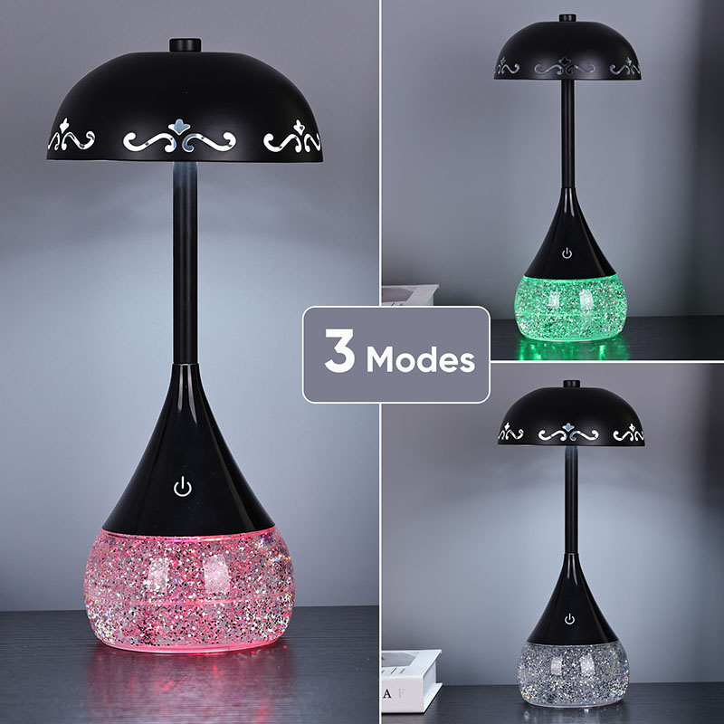 বেসের অভ্যন্তরে, একটি পরিষ্কার বোতলটিতে একটি তরল থাকে যা অনিয়মিতভাবে চলে আসে, একটি মনোমুগ্ধকর ভিজ্যুয়াল এফেক্ট তৈরি করে। ফুলের ছাতা আকারের সাথে তরল বেস এলইডি ডেস্ক ল্যাম্প কোনও সাধারণ তরল নয়; শিমার এবং ঘূর্ণির একটি মন্ত্রমুগ্ধ নৃত্য তৈরি করার জন্য এটি বিশেষভাবে তৈরি করা হয়েছে। তরলটি চলার সাথে সাথে এটি একটি চির-পরিবর্তিত ভিজ্যুয়াল অভিজ্ঞতা তৈরি করে একটি চির-পরিবর্তিত প্যাটার্নে আলোকে প্রতিফলিত করে।