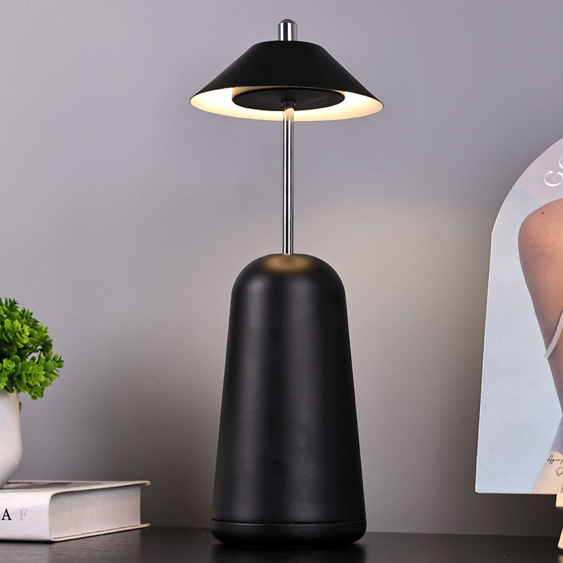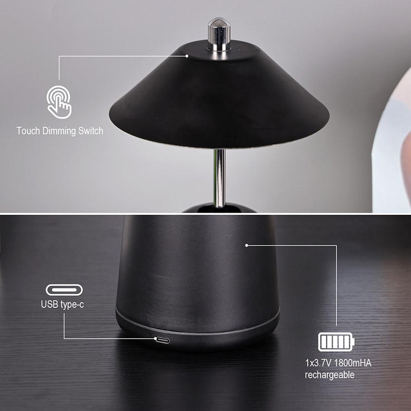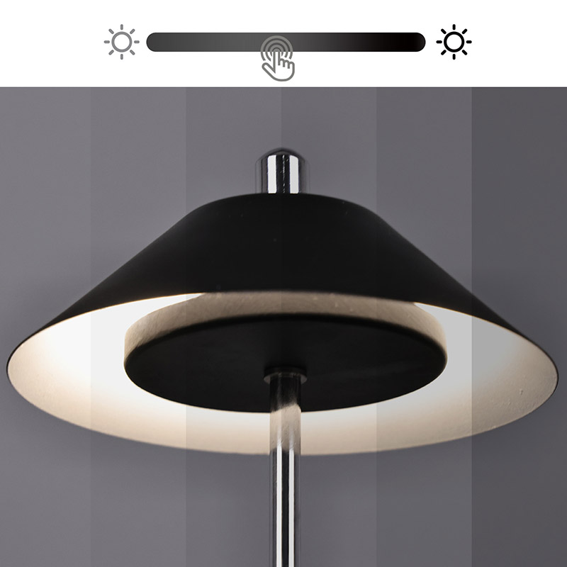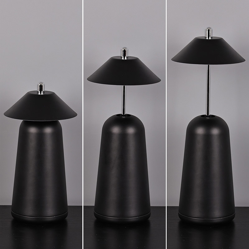 অ্যাডজাস্ট হাইট শেড সহ আধুনিক এলইড ডেস্ক ল্যাম্পের আলোটি ল্যাম্পশেডে অভ্যন্তরীণভাবে কাটা হয়, উষ্ণ রং এবং 3000K থেকে 6500K পর্যন্ত তিনটি মাত্রার আলোর তীব্রতা। ল্যাম্পশেডের শীর্ষটি একটি স্পর্শ সুইচ, একটি অ্যান্টেনার অনুরূপ। ভিত্তিটি অনিয়মিত নলাকার ধাতু দ্বারা গঠিত