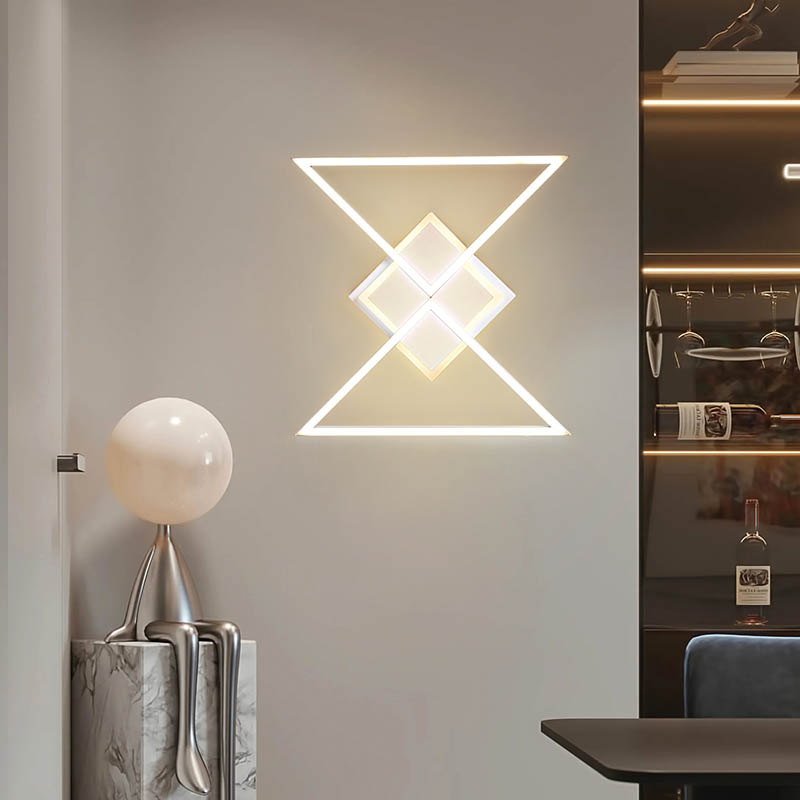 স্পেসিফিকেশন: উপাদান: উচ্চ মানের ধাতব নকশা: আধুনিক, জ্যামিতিক তির্যক ত্রিভুজ আলো: