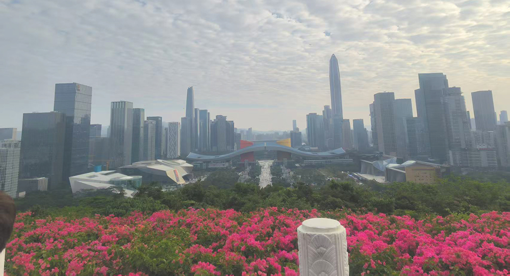 20 মিনিট আরোহণের পর, সবাই চূড়ায় পৌঁছে গেল! কমরেড দেং জিয়াওপিংয়ের ব্রোঞ্জের মূর্তির সামনে দাঁড়িয়ে শেনজেন শহরকে দেখে আমি আবেগে ভরা।