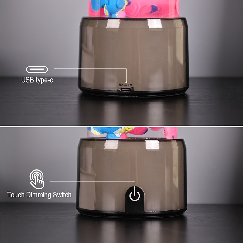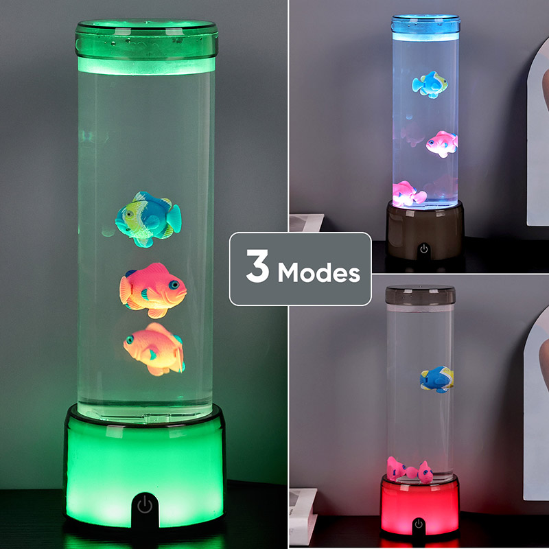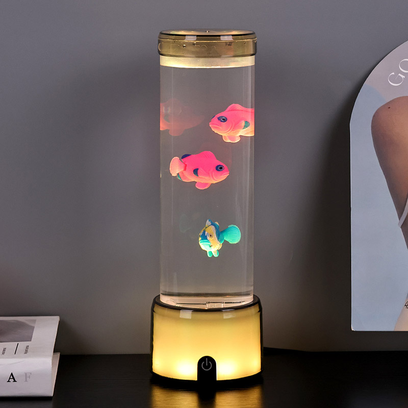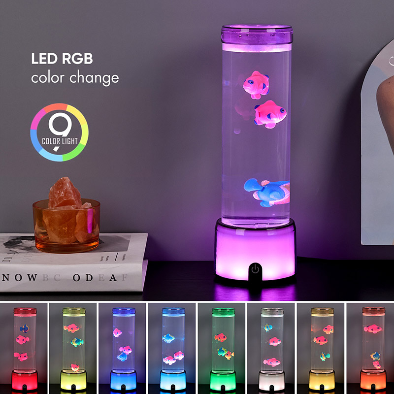 ফিশ ল্যাম্পের ভিত্তিটি একটি আরজিবি রঙ পরিবর্তনকারী স্বচ্ছ বেস দিয়ে সজ্জিত, যা একাধিক রঙের আলো নির্গত করতে পারে, যার ফলে পুরো ল্যাম্পের শরীর একটি রঙিন প্রভাব উপস্থাপন করে। সুইচ চালু করার পর রঙ করুন