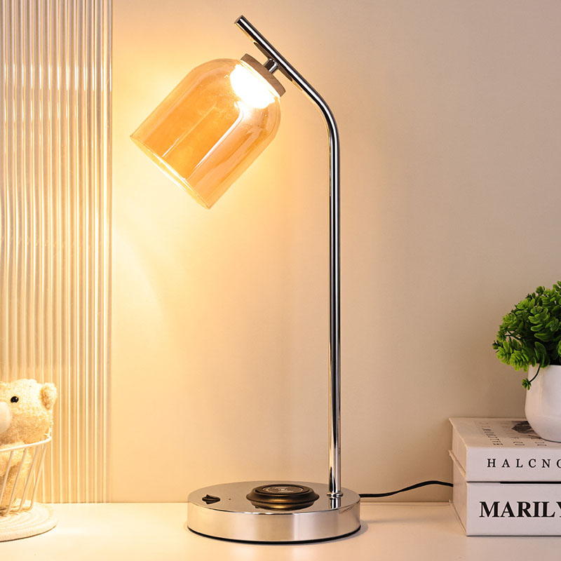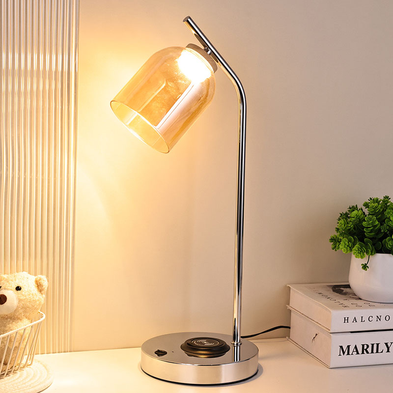 বিলাসবহুল গ্লাস শেড দিয়ে তৈরি গ্লাস শেড সহ QI led ডেস্ক বাতি