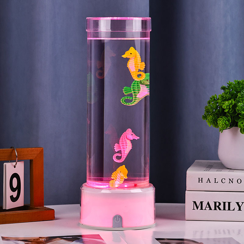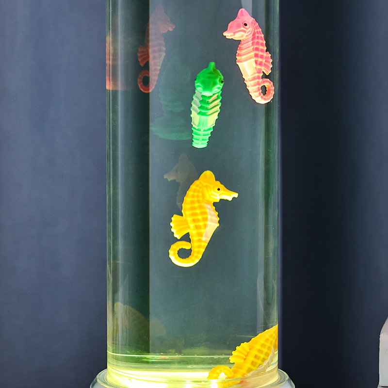 মন্ত্রমুগ্ধ করার মতো জলতলের দৃশ্য যা সমুদ্রের প্রশান্তিকে উদ্ভাসিত করে পুরো ইউনিটটি উচ্চ মানের টেকসই প্লাস্টিক থেকে তৈরি যা নিরাপত্তা স্থিতিশীলতা এবং দীর্ঘস্থায়ী কর্মক্ষমতা নিশ্চিত করে। ল্যাম্পটি প্রায় 12 ইঞ্চি লম্বা একটি মসৃণ স্বচ্ছ টিউব দিয়ে ভরা অ-বিষাক্ত তরল এবং রঙিন সামুদ্রিক ঘোড়ার অলঙ্কারগুলি যত্ন সহকারে সমুদ্রের ঘোড়ার প্রতি মনোযোগী। রঙ এবং বাস্তবসম্মত টেক্সচার এগুলি একটি শান্ত অভ্যন্তরীণ সঞ্চালন ব্যবস্থা দ্বারা চালিত তরল কলামের মধ্যে সুন্দরভাবে ভাসতে পারে যা বাস্তব সমুদ্র জীবনের অনুরূপ একটি প্রাকৃতিক দোলাচল তৈরি করে।