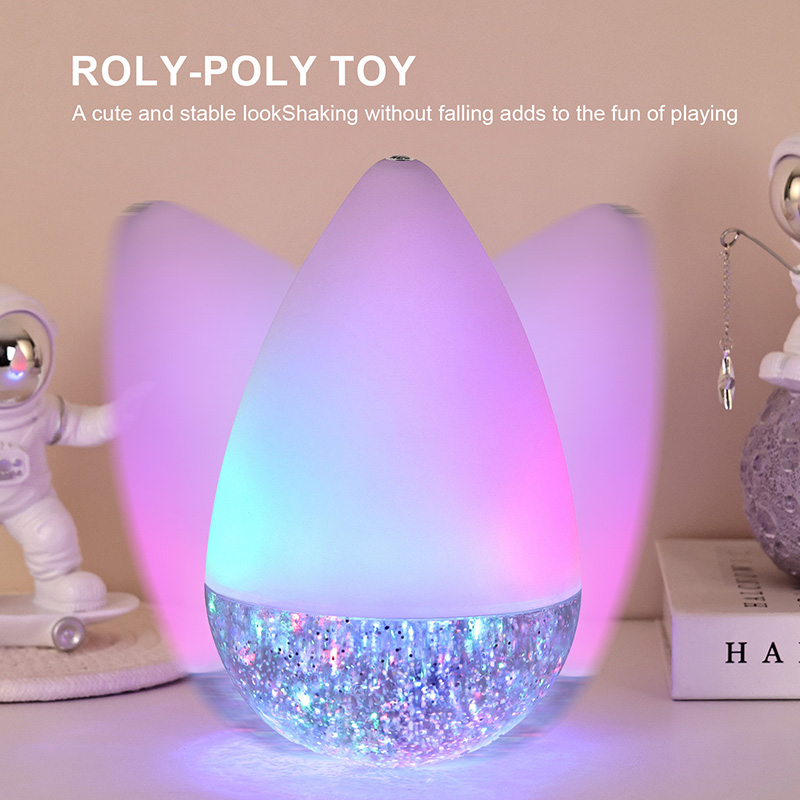 বৈশিষ্ট হল এটি যেভাবেই কাঁপানো হোক না কেন, আরজিবি গ্লিটার রঙিন রোলি-পলি খেলনা রাতের আলো উঠে দাঁড়াবে
