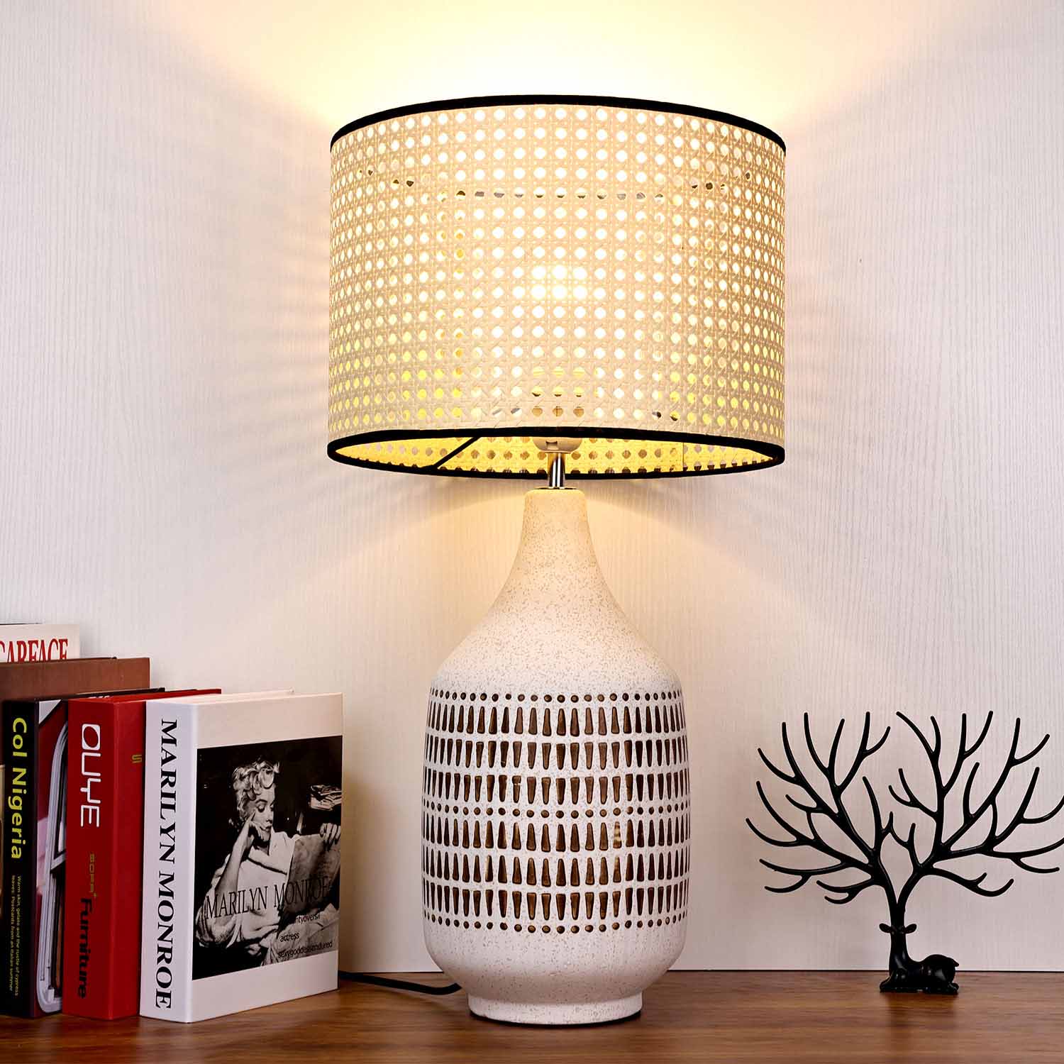 ডিজাইন বেস বিভিন্ন সঙ্গে ঐতিহ্য টেবিল ল্যাম্প. প্রাকৃতিক শৈলীর মতো বাঁশের ছায়াযুক্ত ডেস্ক ল্যাম্প। ল্যাম্প বেস হিসাবে নতুনভাবে ডিজাইন করা সিরামিক স্টাইল। অদ্ভুত এবং প্রাকৃতিক শৈলী ভিলা বা হোটেলের জন্য খুব উপযুক্ত।