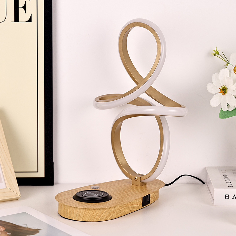ওয়্যারলেস চার্জার LED ডেস্ক ল্যাম্প ফ্রাইড ডফ টুইস্ট শেড একটি ধাতব প্রধান কাঠামোর সমন্বয়ে গঠিত।